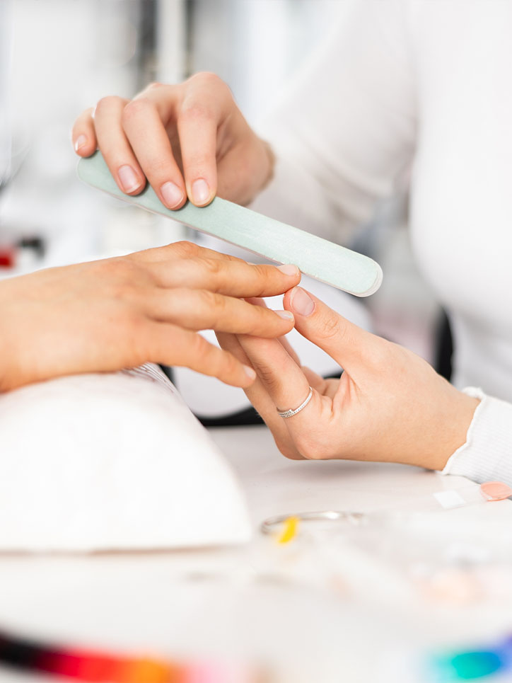 Hands are soaked in soothing warm water, nail reshaping, buffing, cuticle care, Moisturizing lotion with hand massage and polish.